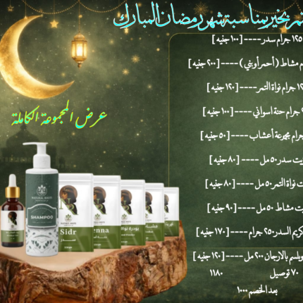 ٢٥٠جرام سدر + ١٢٥جرام مشاط احمر أو بني + ١٢٥ جرام نواة تمر + ٢٥٠جرام حنة اسواني + زيت المشاط